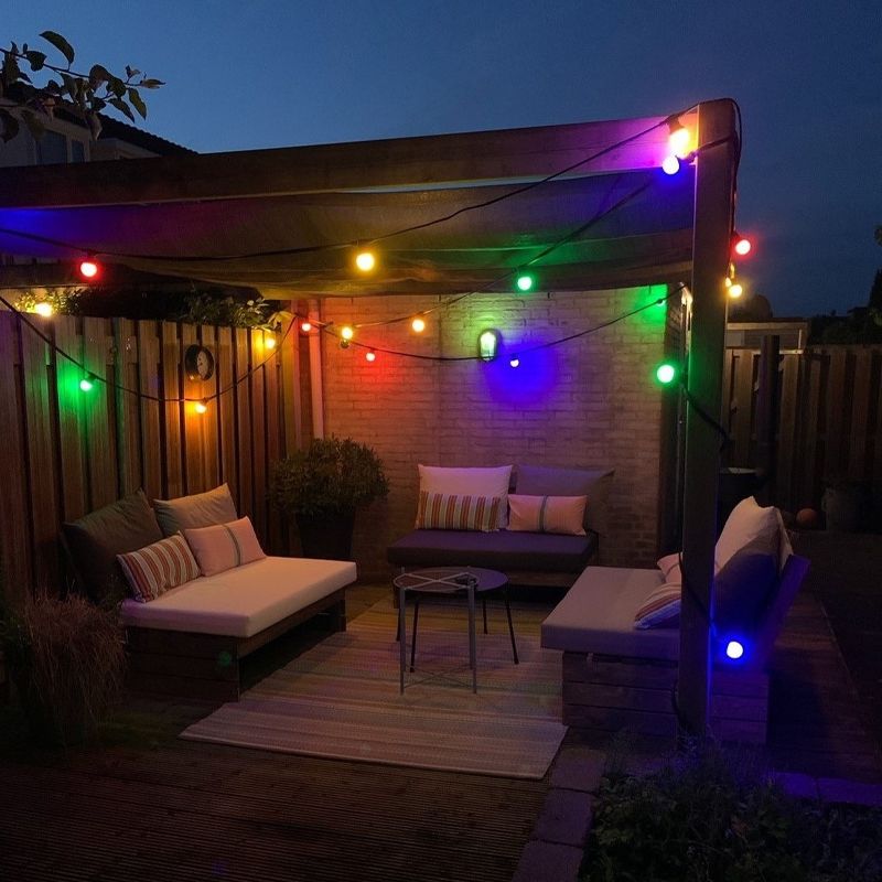 Product informatie Maximale wattage 10 Aansluitspanning 220-240V Energielabel F Aantal lampjes 10 Product informatie Aantal lumen 850 Lichtkleur RGB (alle kleuren) Type fitting E27 Verwachte aantal branduren 10000 Incl. lampje Ja Kabellengte 1000 Lengte in cm 1000 Dimbaar Nee Garantie 2 jaar IP waarde IP44 (stof- en waterbestendig) Kleur Zwart Materiaal Rubber Met snoer en stekker Ja Artikelnummer Q20471 - Home
