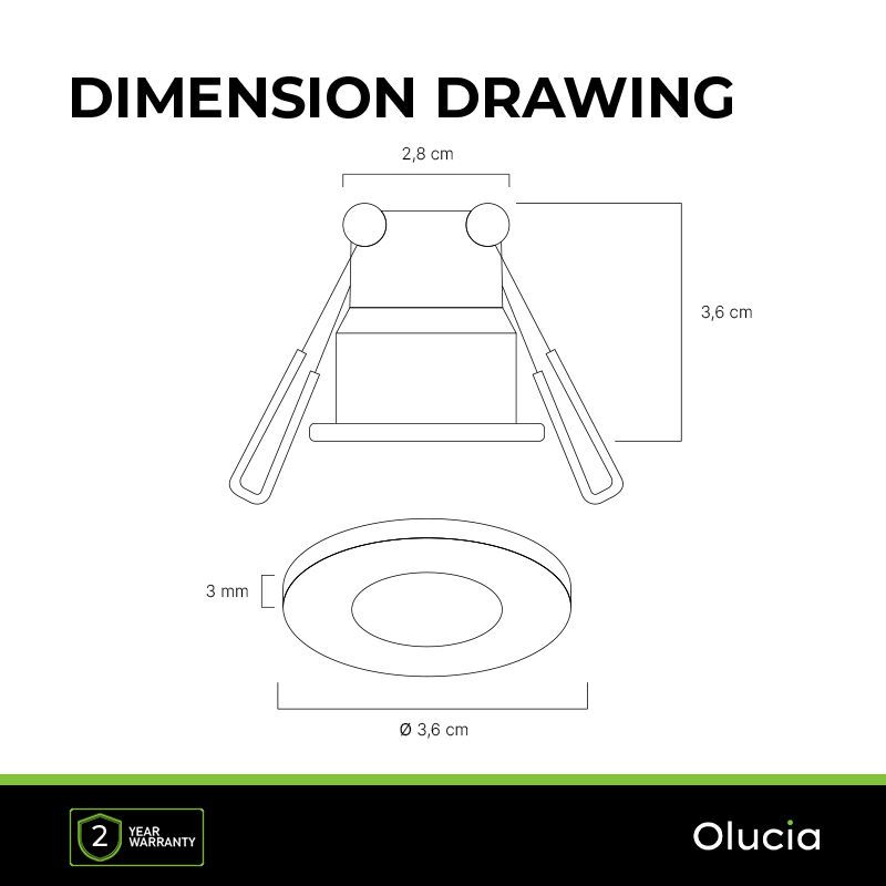 De verandaverlichting Dico heeft de volgende afmetingen: De diameter is 3,6 cm, de zaagmaat is 2,8 cm en de inbouwdiepte is 3,5 cm. Iedere spot heeft standaard een aansluitkabel van 5 meter.Niet beschikbaarSKUOmschrijving