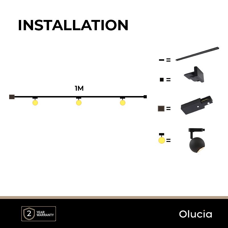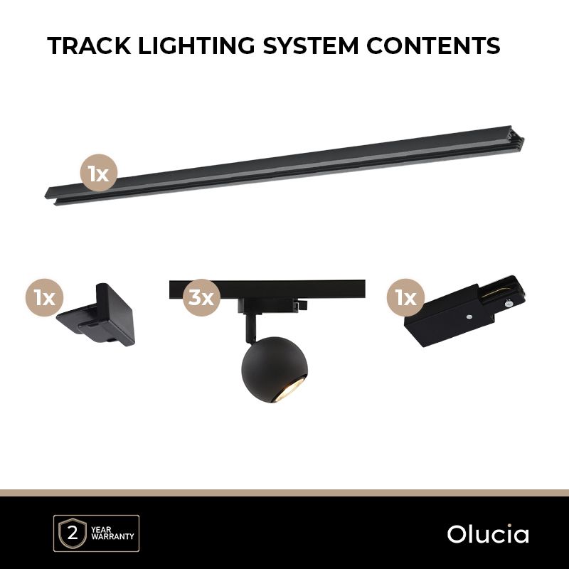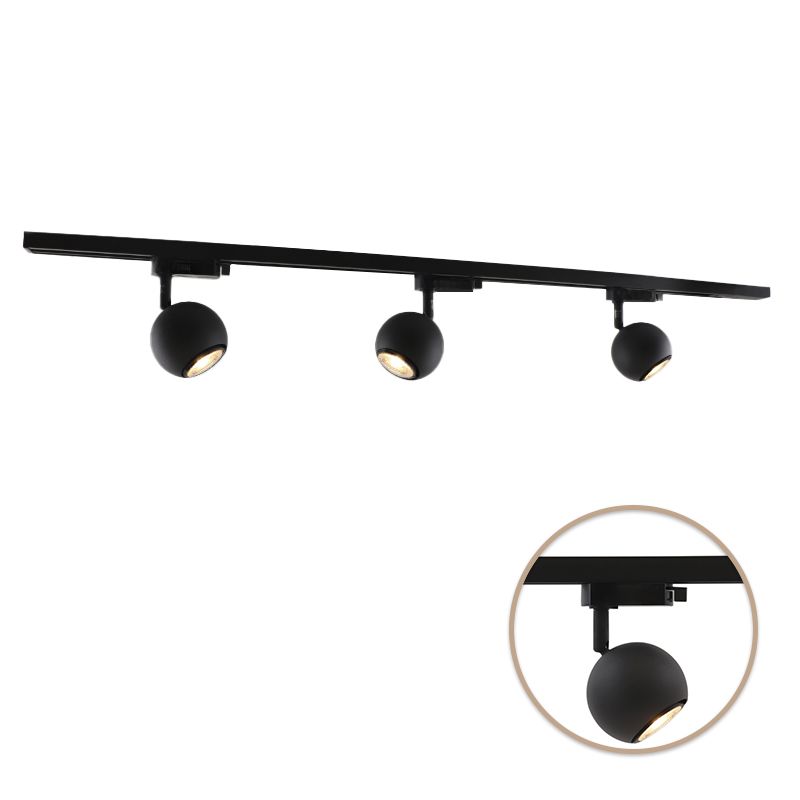 1M zwart 1-fase railverlichting systeem + 3 Elena railspots- 100 cm