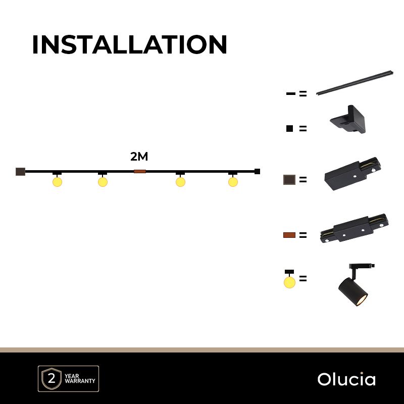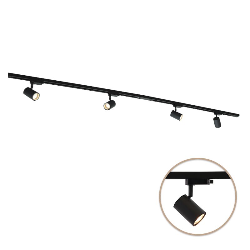2M zwart 1-fase railverlichting systeem + 4 Skip railspots- 200 cm