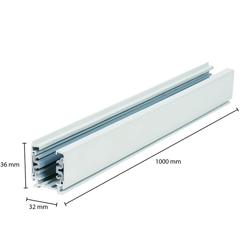 Deze hoge kwaliteit aluminium 3-fase rail is 1 meter lang en wit van kleur. De rail is te koppelen met andere 3-fase railverlichting onderdelen uit de serie Pro. De rail is direct aan het plafond te bevestigen, op te hangen of bijvoorbeeld aan de wand te bevestigen.