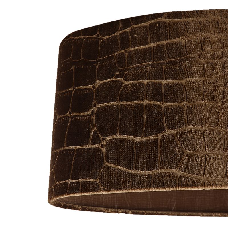 De moderne velours lampenkap Emilius is bruin van kleur en gemaakt van croco stof. De bruine velours lampenkap wordt geleverd exclusief bijpassende lichtbron. Deze lampenkap past bij een lamp met een E27 fitting.