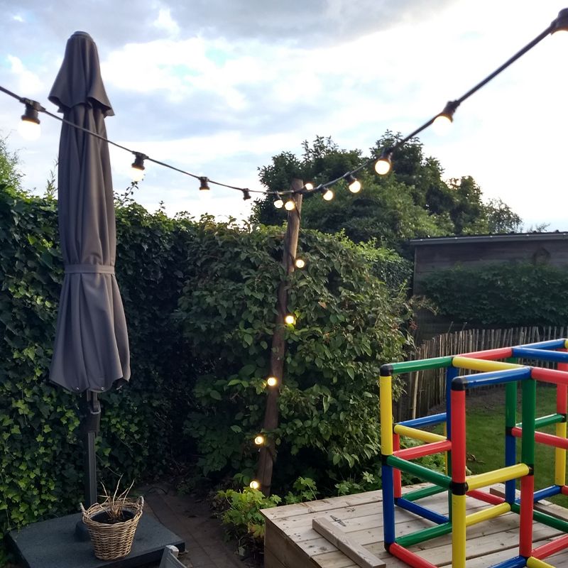 Dit is een rubberen prikkabel snoer met 1 fitting per meter. De prikkabel is verkrijgbaar in diverse lengtes. Dit sterke snoer is geschikt voor buiten en binnen en is ideaal als terrasverlichting, sfeerverlichting of feestverlichting.