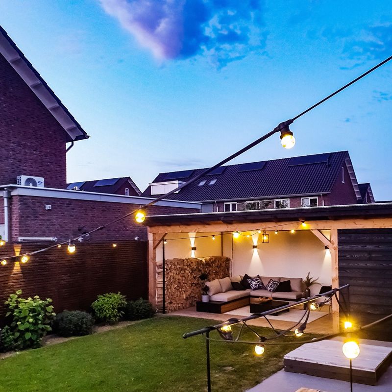 Product informatie Maximale wattage 5 Aansluitspanning 220-240V Energielabel F Aantal lampjes 5 Product informatie Aantal lumen 425 Lichtkleur 2700K (extra warm wit) Type fitting E27 Verwachte aantal branduren 10000 Incl. lampje Ja Kabellengte 500 Lengte in cm 500 Dimbaar Nee Garantie 2 jaar IP waarde IP44 (stof- en waterbestendig) Kleur Zwart Materiaal Rubber Met snoer en stekker Ja Artikelnummer Q20498 - Home