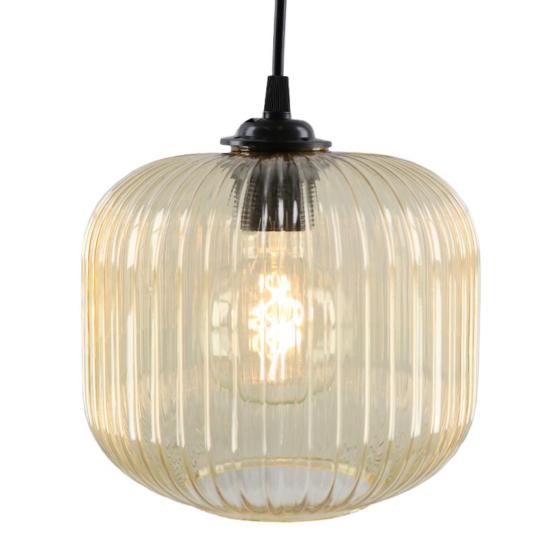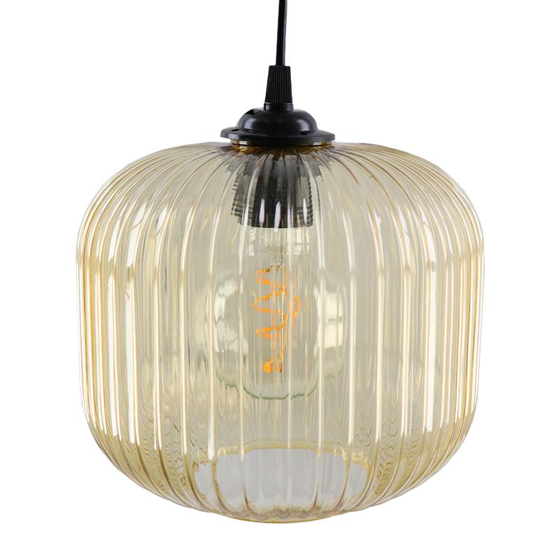 - Amberkleurige hanglamp Charlois, glas, retro, 3L