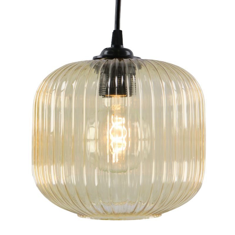 De amberkleurige hanglamp Charlois heeft de stijl retro en is gemaakt van glas. De retro hanglamp wordt geleverd exclusief lichtbronnen. In deze lamp moeten 3 lichtbronnen met E27 (grote) fitting. De lichtbronnen mogen maximaal 25 watt aan vermogen hebben. Klik hier voor meer informatie voor het kiezen van de juiste lichtbron.