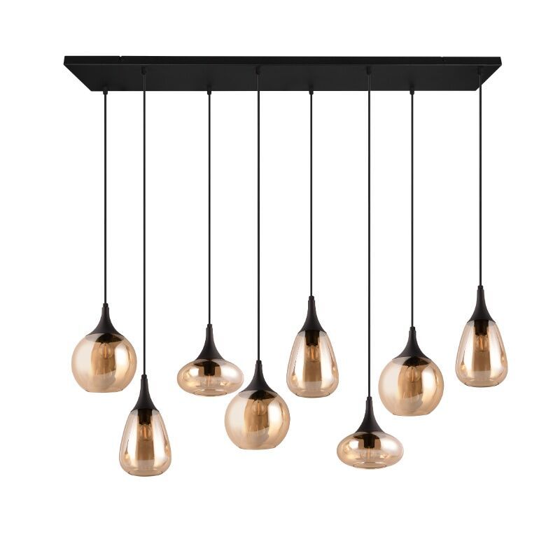 De amberkleurige hanglamp Sybren heeft de stijl design en is gemaakt van glas. Deze design hanglamp heeft 8 E14 fittingen en wordt exclusief 8 bijpassende lichtbronnen geleverd. In de lamp kunnen lichtbronnen met een maximaal vermogen van 40 watt.