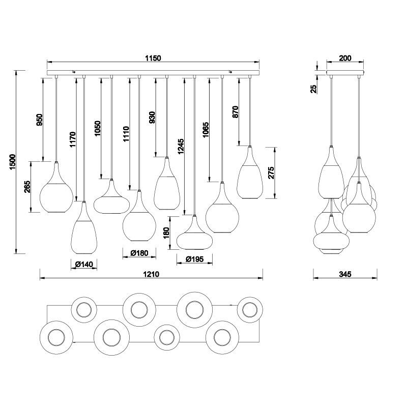 De gemiddelde hoogte van een eettafel hanglamp is ongeveer 150-160 cm, wanneer je vanaf de vloer tot de onderkant van de kap meet. Zeg dat het plafond 250 cm hoog is, dan houd je 90 cm over voor de lamp en snoer. Van die 90 centimeter trek je dus de grootte van de lampenkap af en dan heb je de maat van het snoer. Een andere richtlijn is dat de afstand tussen de tafel en de lamp 60-70 cm moet zijn. Wanneer je de juiste lengte hebt bepaald kan je (vanaf de onderkant metend) de uiterste gewenste lengte markeren. Tot deze lijn kort je het snoer in.