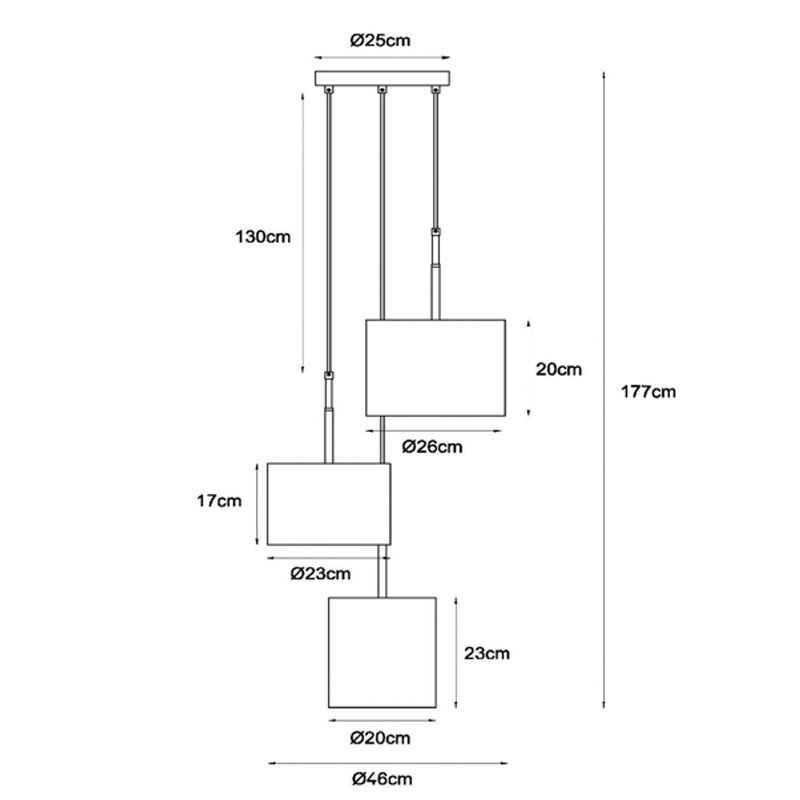 Product informatie Maximale wattage 40 Aansluitspanning 220-240V Aantal lampjes 3 Type fitting E27 Product informatie Incl. lampje Nee Breedte in cm 46 Breedte voet-/montageplaat in cm 25 Diameter in cm 46 Diameter voet-/montageplaat 25 Gewicht in kg 1.9 Hoogte in cm 177 Hoogte voet-/montageplaat 3 Lengte in cm 46 Lengte voet-/montageplaat 25 Dimbaar Ja (niet meegeleverd) Garantie 2 jaar IP waarde IP20 (stofdicht) Kleur Beige, Zwart Materiaal Metaal, Stof Stijl Landelijk Artikelnummer Q80640 - Home