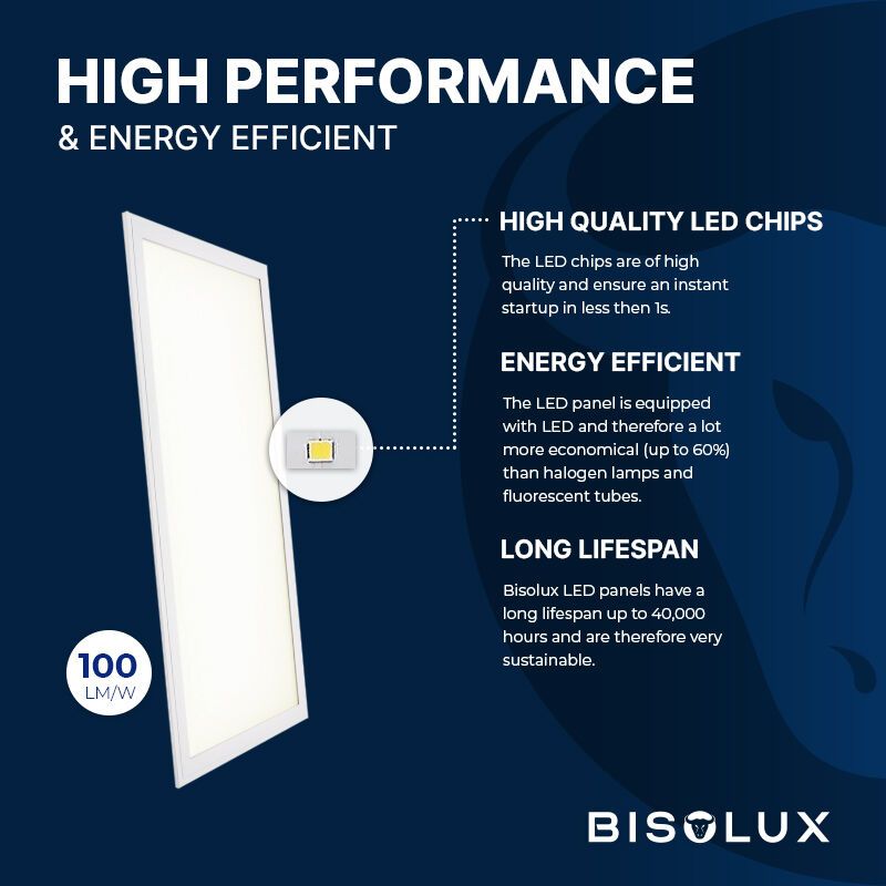 Special Price 14,99 Adviesprijs: Regular Price 59,99Op voorraad Bisolux LED paneel 60x120 - 60W - 4000K - UGR<19 - side-lit- B: 120 cm, H: 1,5 cm