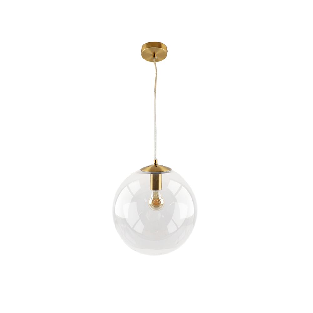 De bolle hanglamp Dolf met transparant glas en bronze ophangpendel is verkrijgbaar in meerdere formaten. De pendels zijn beschikbaar in de diameters 20 cm, 30 cm en 40 cm.