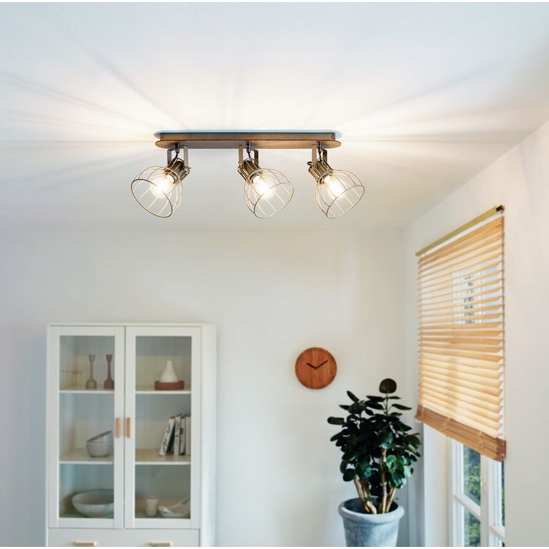 Special Price 28,99 Adviesprijs: Regular Price 34,993-6 werkdagen Bruine landelijke plafondspot, Anton, hout, 3 lampen- B: 0,5 cm, L: 48 cm