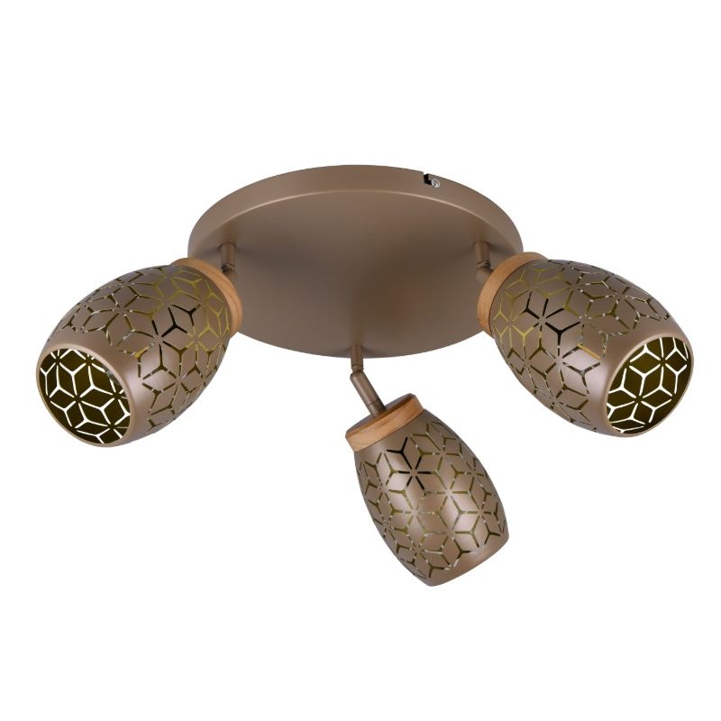 De bruine plafondspot Delana heeft de stijl modern en is gemaakt van metaal. Deze moderne plafondspot heeft 3 E14 fittingen en wordt exclusief 3 bijpassende lichtbronnen geleverd. In de lamp kunnen lichtbronnen met een maximaal vermogen van 10 watt.