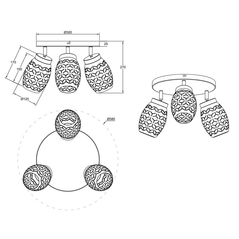 Product informatie Maximale wattage 10 Aansluitspanning 220-240V Aantal lampjes 3 Type fitting E14 Product informatie Incl. lampje Nee Breedte in cm 58 Diameter in cm 58 Hoogte in cm 27 Dimbaar Ja (niet meegeleverd) Garantie 2 jaar IP waarde IP20 (stofdicht) Kleur Bruin Materiaal Metaal Stijl Modern Artikelnummer Q10306 - Home