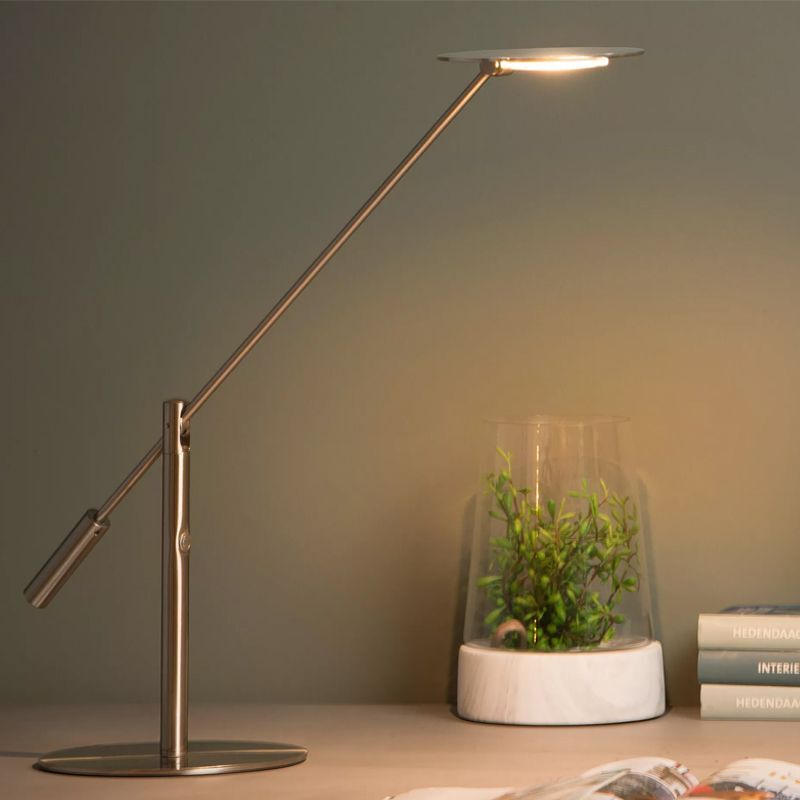 Je kan deze bureaulamp eenvoudig dimmen. De lamp is namelijk uitgerust met een touchdimmer. Hiermee kan je de lamp zelf bedienen en de lichtsterkte naar wens instellen. Zo kan je de lamp aanpassen aan de sfeer of juist feller zetten als je meer licht wil.