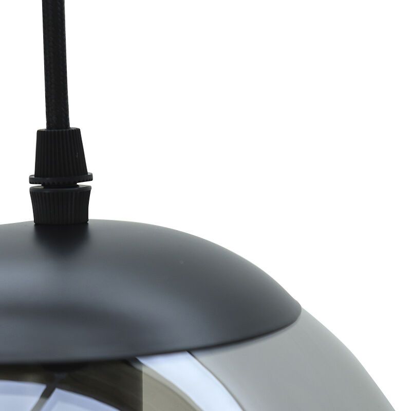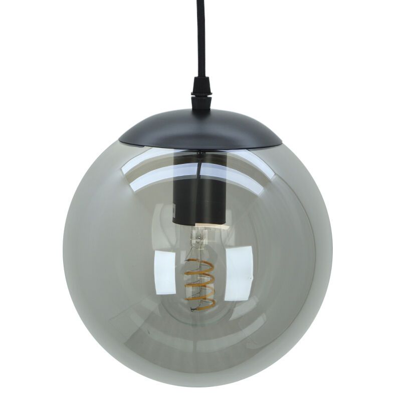 Special Price 49,99 Adviesprijs: Regular Price 69,99Op voorraad Ronde design hanglamp Lazaro met 3 rookglas kappen- D: 30 cm, H: 130 cm