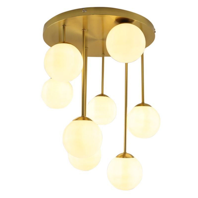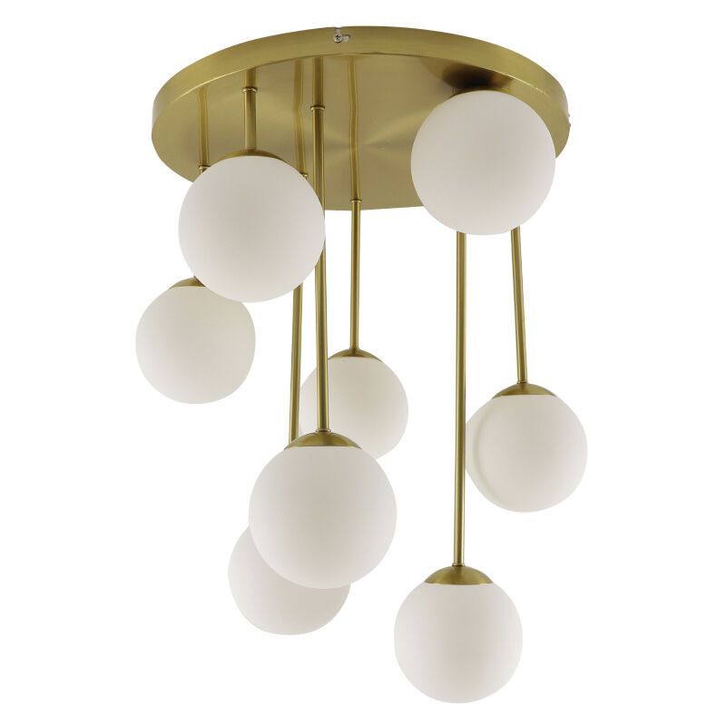 De design plafondlamp Stacy is messing van kleur en gemaakt van glas. De messing plafondlamp wordt geleverd exclusief bijpassende lichtbronnen. In deze lamp moeten 8 lichtbronnen met G9 fittingen. Het maximale wattage van de lichtbronnen mag niet hoger zijn dan 40 watt.