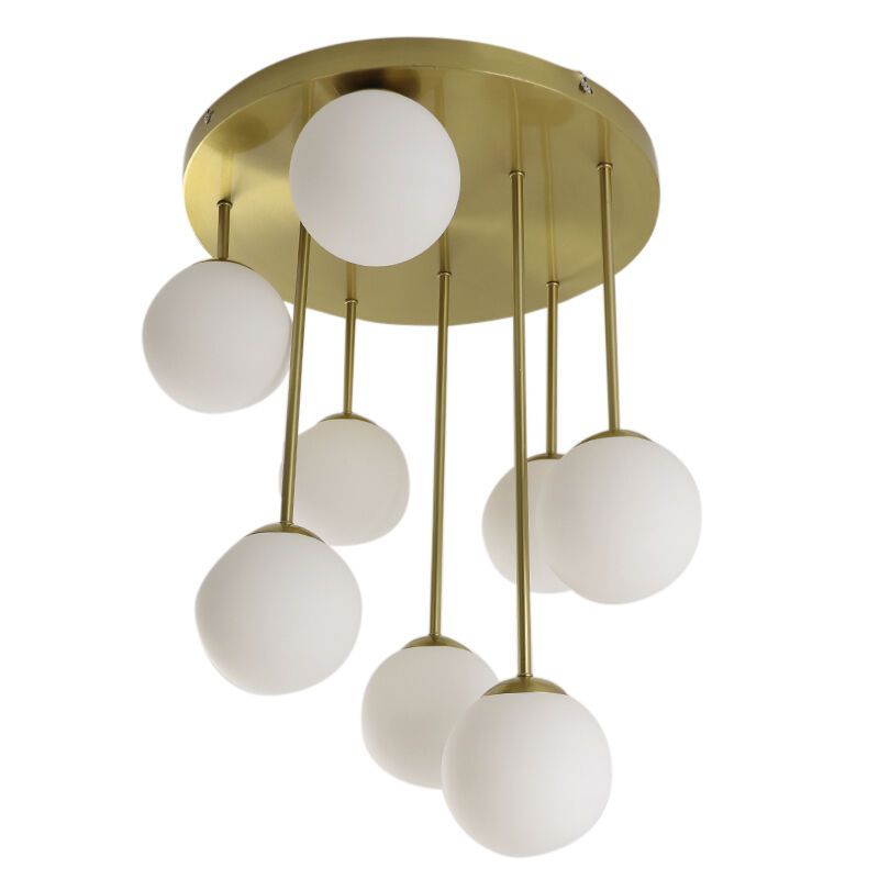 Product informatie Maximale wattage 40 Aansluitspanning 220-240V Aantal lampjes 8 Type fitting G9 Product informatie Incl. lampje Nee Breedte in cm 40 Breedte voet-/montageplaat in cm 40 Diameter in cm 40 Diameter voet-/montageplaat 40 Hoogte in cm 55 Hoogte voet-/montageplaat 2.5 Lengte voet-/montageplaat 40 Dimbaar Ja (niet meegeleverd) Garantie 2 jaar IP waarde IP20 (stofdicht) Kleur Messing, Wit Materiaal Aluminium, Glas Stijl Design Artikelnummer Q79549 - Home