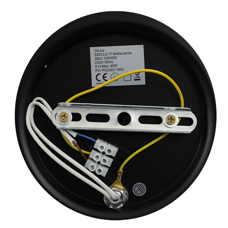 Product informatie Maximale wattage 40 Aansluitspanning 220-240V Aantal lampjes 1 Type fitting E14 Product informatie Incl. lampje Nee Breedte in cm 25 Breedte voet-/montageplaat in cm 19 Diameter in cm 25 Hoogte in cm 8.5 Hoogte voet-/montageplaat 3 Dimbaar Ja (niet meegeleverd) Garantie 2 jaar IP waarde IP20 (stofdicht) Kleur Grijs, Zwart Materiaal Metaal, Glas Stijl Design Artikelnummer Q67350 - Home