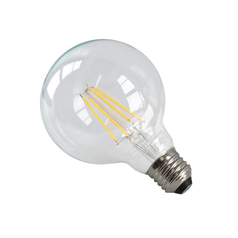 - Dimbare Olucia E27 LED lamp, G95, 5W, Transparant glas, 2700k