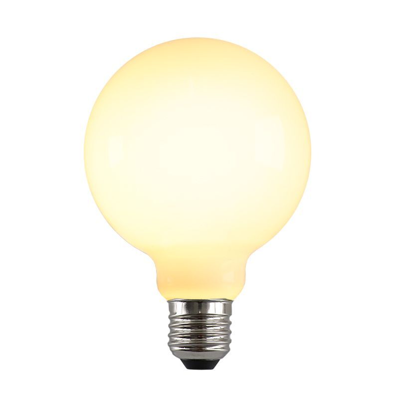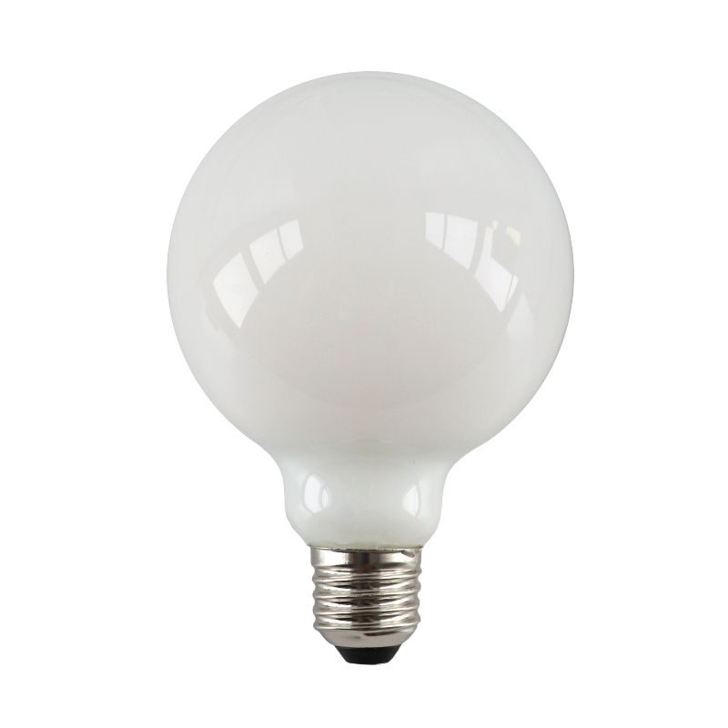 - Dimbare Olucia E27 LED lamp, G95, 5W, Wit glas, 2700k