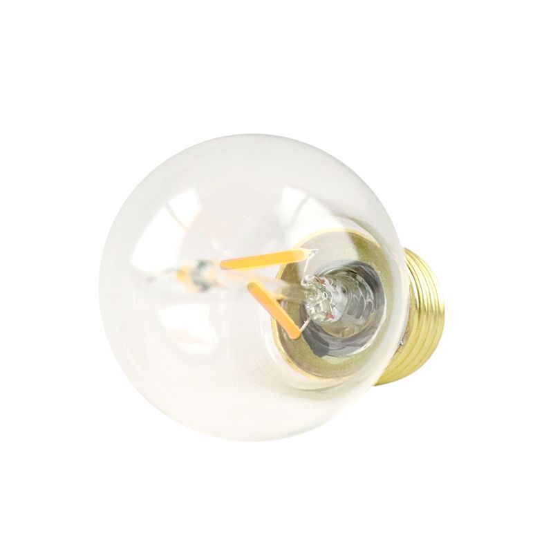 Met deze E27 LED filament lamp kies je voor een energiezuinige LED lamp van hoge kwaliteit. De E27 LED filament lamp heeft een gemiddelde levensduur van 15000 uur en een lichtopbrengst van 120 lumen. Met een LED lamp bespaar je energie omdat de lamp een laag wattage heeft. Deze E27 LED filament lamp heeft een vermogen van 1,5 Watt. Dit is de vervanger van een traditionele gloeilamp van ongeveer 14 Watt.
