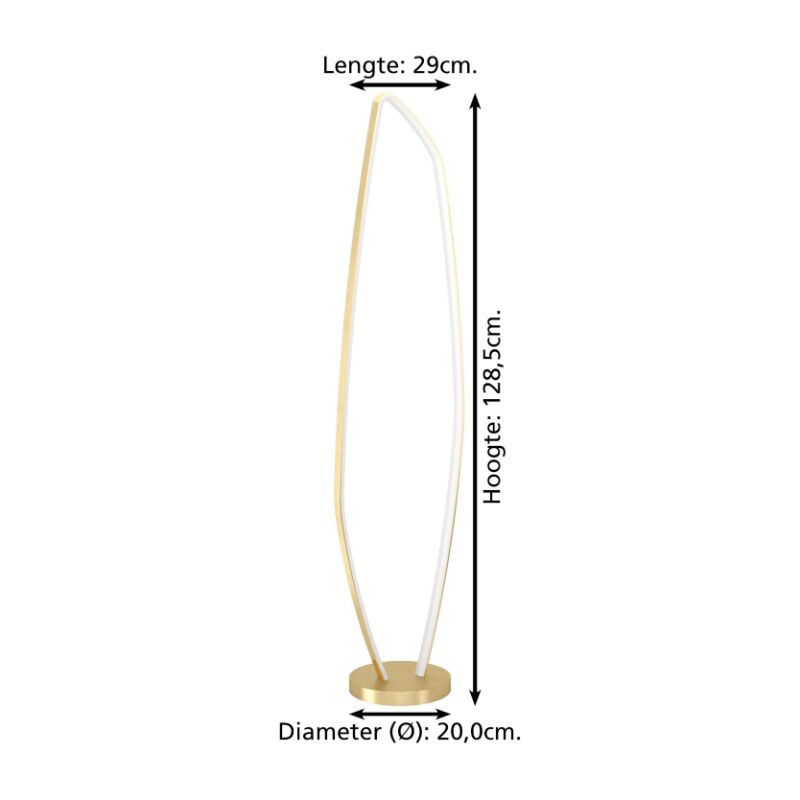 De gouden design vloerlamp Samson is gemaakt van aluminium. De gouden vloerlamp is uitgevoerd met 25,2 watt geïntegreerd LED verlichting. De geïntegreerde LED verlichting heeft de lichtkleur 3000K (warm wit). Dit is warm wit licht dat een gezellige en warme sfeer creëert.