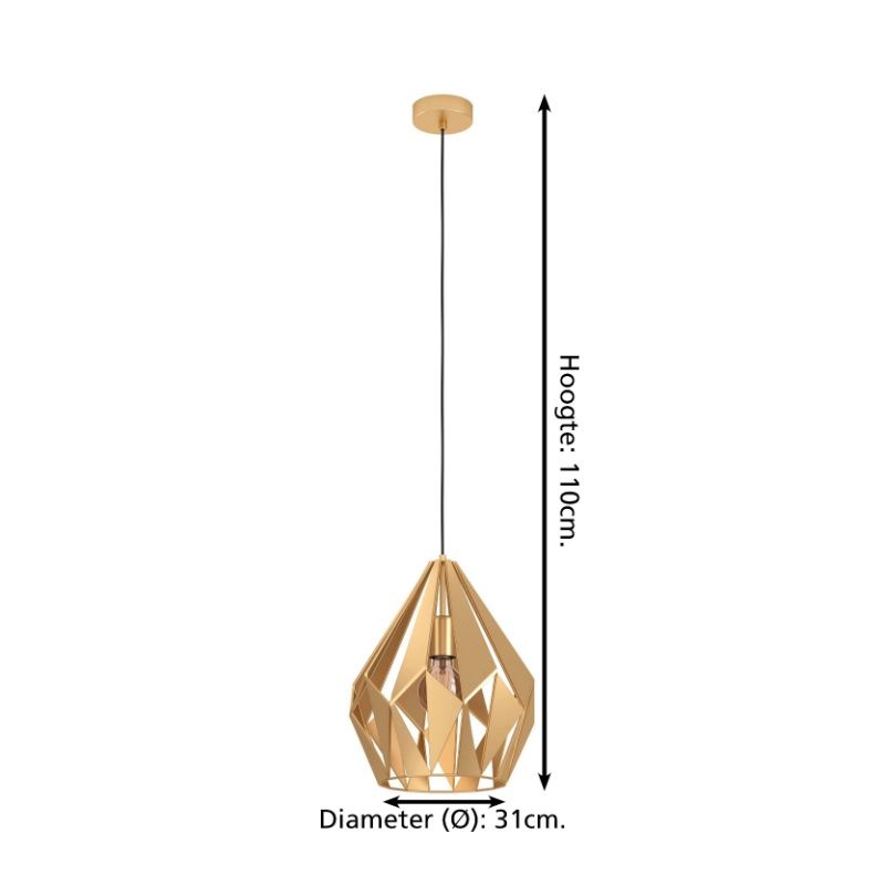Product informatie Maximale wattage 60 Aansluitspanning 220-240V Aantal lampjes 1 Type fitting E27 Product informatie Incl. lampje Nee Breedte in cm 31 Diameter in cm 31 Gewicht in kg 1.682 Hoogte in cm 110 Dimbaar Ja (niet meegeleverd) Garantie 2 jaar IP waarde IP20 (stofdicht) Kleur Goud Materiaal Aluminium Stijl Industrieel Artikelnummer Q33772