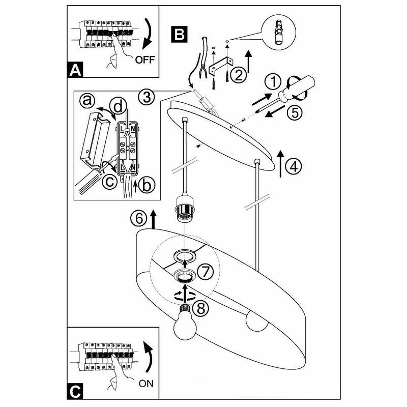 Je kan het snoer eenvoudig inkorten door het snoer door het plafondkapje te trekken. Bereken hiervoor eerst op welke hoogte je de hanglamp wil laten hangen.