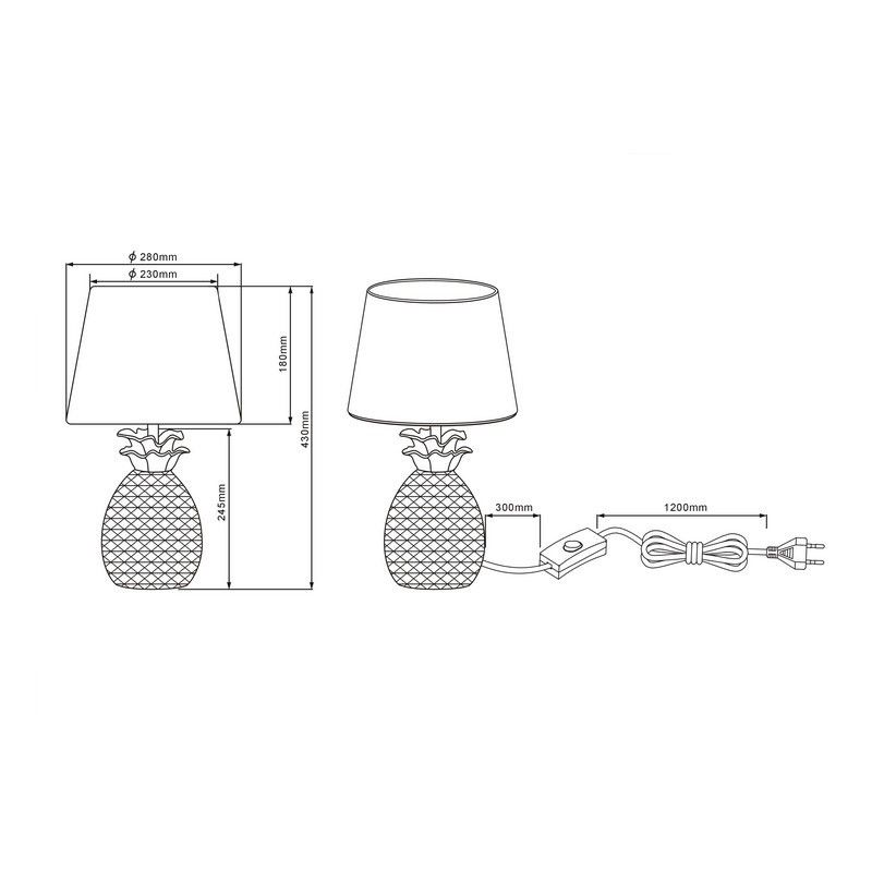 Product informatie Maximale wattage 60 Aansluitspanning 220-240V Aantal lampjes 1 Type fitting E27 Product informatie Incl. lampje Nee Breedte in cm 28 Diameter in cm 28 Gewicht in kg 1.47 Hoogte in cm 43 Dimbaar Ja (niet meegeleverd) Garantie 2 jaar IP waarde IP20 (stofdicht) Kleur Goud Materiaal Stof, Keramiek Met schakelaar Ja Met snoer en stekker Ja Stijl Modern Type schakelaar Aan/uit schakelaar op het snoer Artikelnummer Q14368 - Home