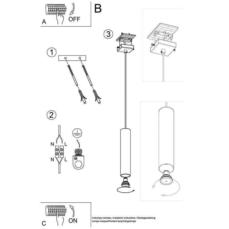 Je kan het snoer eenvoudig inkorten door het snoer door het plafondkapje te trekken. Bereken hiervoor eerst op welke hoogte je de hanglamp wil laten hangen.