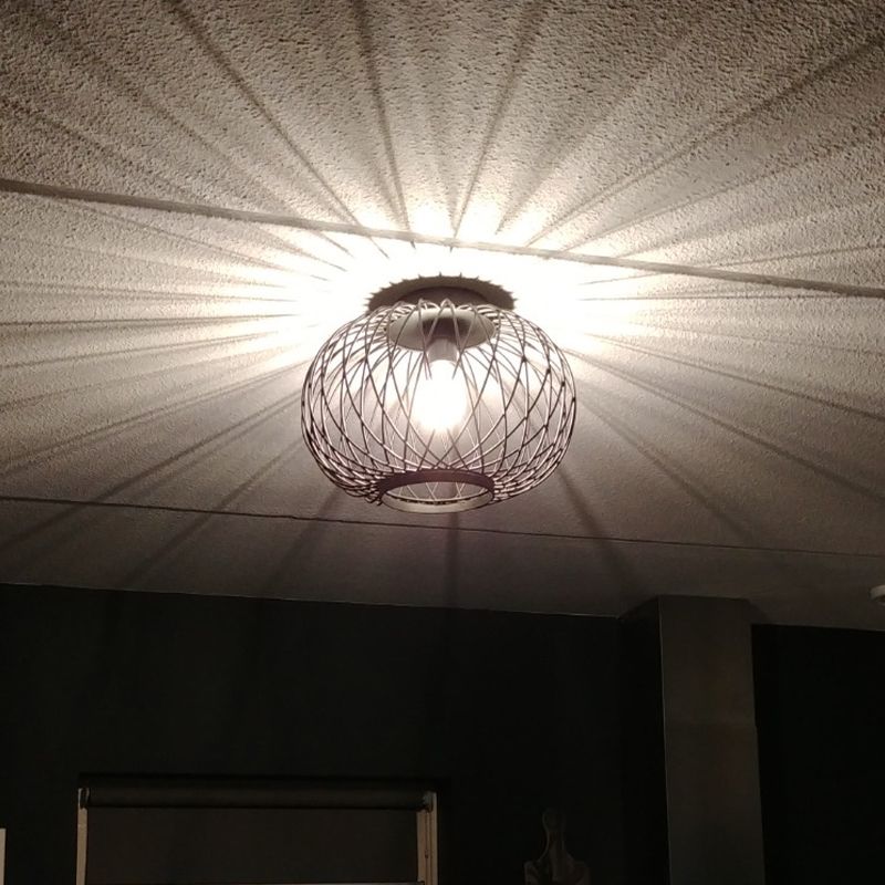 Special Price 49,99 Adviesprijs: Regular Price 59,99Op voorraad Stoere, industrie plafondlamp Merlon, gaaslook Brede kooi plafondlamp Nova, Vintage look- D: 22 cm, H: 20 cm