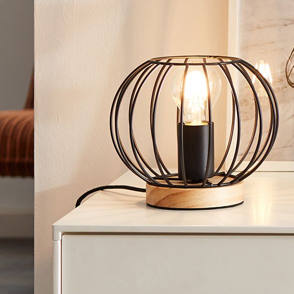 59,994-8 werkdagen Industriële tafellamp Taede, Zwart, hout- D: 20 cm, H: 26,5 cm