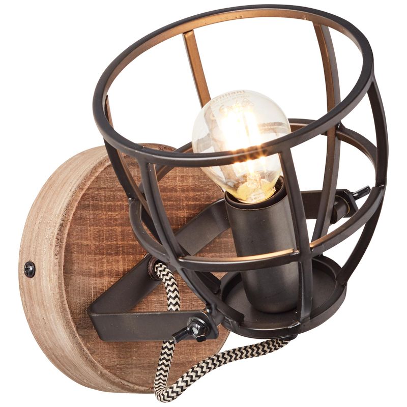 44,994-8 werkdagen Industriële wandspot Willard, zwart met bruin, hout- B: 12 cm, H: 15 cm