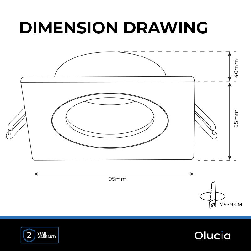 De inbouwhoogte inclusief lichtbron en fitting is circa 6 cm voor de 12 volt lichtbron en 7 cm voor de 230 Volt lichtbron. Deze inbouwhoogte is inclusief de dikte van het plafond (bijvoorbeeld de dikte van de gipsplaat), de ruimte dat het geheel boven het plafond uitkomt is te verminderen met de dikte van het plafond.