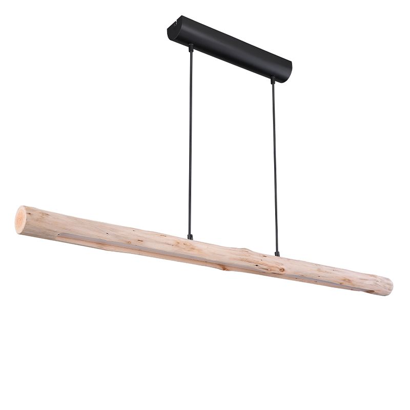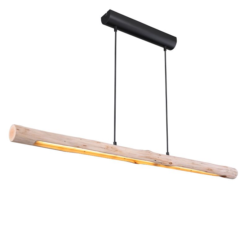 Landelijke hanglamp Abbas, bruin, hout, 3000K LED- B: 7 cm, H: 150 cm