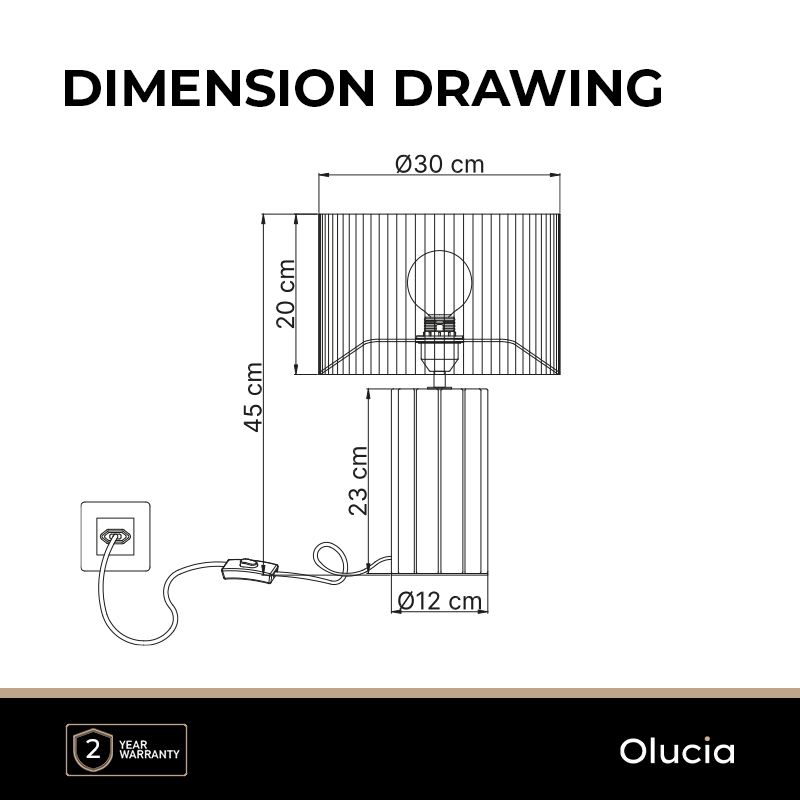 Product informatie Maximale wattage 40 Aansluitspanning 220-240V Aantal lampjes 1 Type fitting E27 Product informatie Incl. lampje Nee Breedte in cm 30 Breedte voet-/montageplaat in cm 12 Diameter in cm 30 Hoogte in cm 45 Hoogte voet-/montageplaat 23 Lengte in cm 30 Lengte voet-/montageplaat 12 Dimbaar Ja (niet meegeleverd) Garantie 2 jaar IP waarde IP20 (stofdicht) Kleur Zwart Materiaal Stof, Keramiek Met schakelaar Ja Met snoer en stekker Ja Stijl Landelijk Type schakelaar Aan/uit schakelaar op het snoer Artikelnummer Q10672