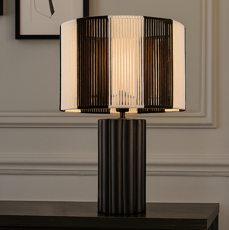 De landelijke tafellamp Juno is zwart van kleur en gemaakt van stof. De zwarte tafellamp wordt geleverd exclusief bijpassende lichtbron. In deze lamp moet een lichtbron met E27 fitting en het maximale wattage van de lichtbron mag niet hoger zijn dan 40 watt.