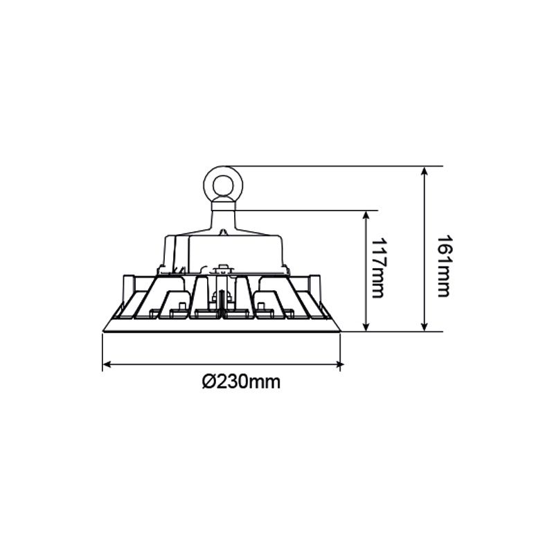 Deze LED high bay heeft de volgende eigenschappen:• 23 cm diameter
