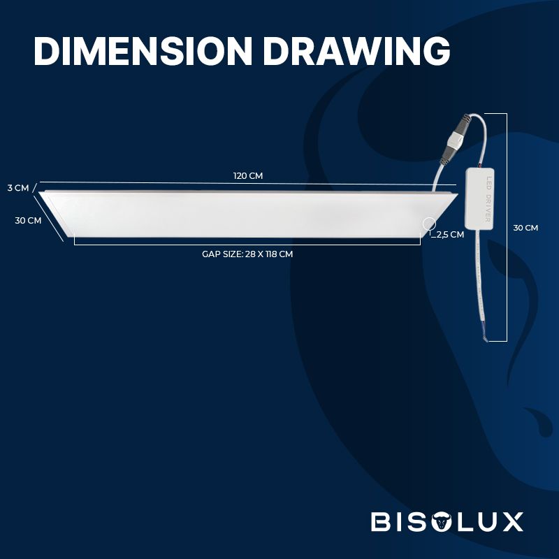 Bisolux LED paneel 30x120 - 38W - 3000K - UGR<19 - side-lit- B: 120 cm, H: 1,5 cm