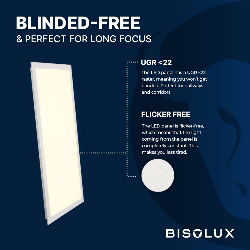 Bisolux LED paneel 30x120 - 38W - 3000K - UGR<19 - side-lit- B: 120 cm, H: 1,5 cm