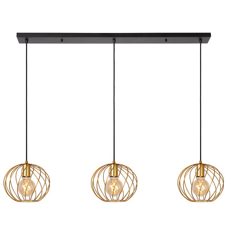 Zwarte Wiro hanglamp met 3 ronde, 20cm, kappen- B: 90 cm, H: 130 cm