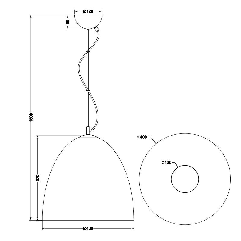 Zwarte koepellamp modern, Ingmar- D: 40 cm, H: 150 cm