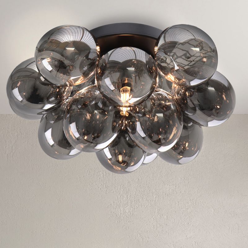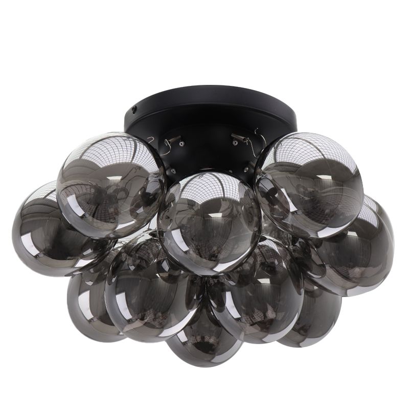 - Metalen plafondlamp zwart, Cyril, met 15 glazen bollen