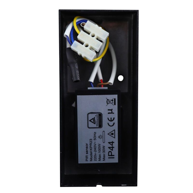 De moderne buiten wandlamp met bewegingssensor Corina is zwart van kleur en gemaakt van aluminium. De zwarte buiten wandlamp met bewegingssensor wordt geleverd exclusief bijpassende lichtbron. In deze lamp moet een lichtbron met GU10 fitting en het maximale wattage van de lichtbron mag niet hoger zijn dan 35 watt.