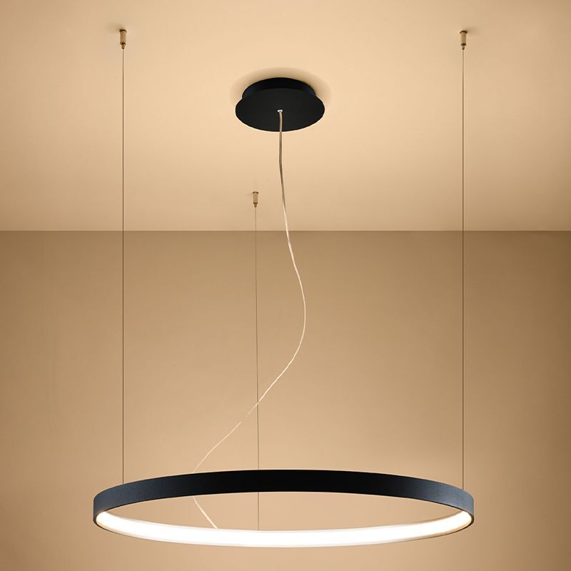 De moderne hanglamp Ringo is zwart van kleur en is gemaakt van aluminium. Deze zwarte hanglamp is uitgerust met geïntegreerd LED. De lamp heeft een vermogen van 50 watt en de lichtkleur 3000K (warm wit). Het is niet mogelijk om deze lamp te dimmen.