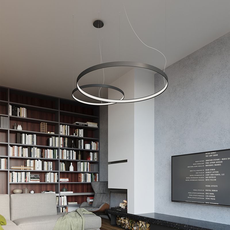 49,993-6 werkdagen Moderne hanglamp Ringo, zwart, aluminium, 70w, 3000K- D: 110 cm, H: 150 cm