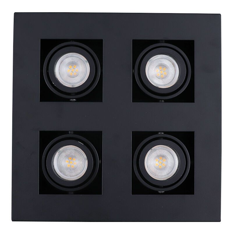 Product informatie Maximale wattage 25 Aansluitspanning 220-240V Aantal lampjes 4 Type fitting GU10 Product informatie Incl. lampje Nee Breedte in cm 25 Hoogte in cm 8.8 Lengte in cm 25 Dimbaar Ja (niet meegeleverd) Garantie 2 jaar IP waarde IP20 (stofdicht) Kleur Zwart Materiaal Aluminium Stijl Modern Artikelnummer Q51726 - Home