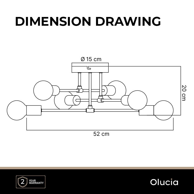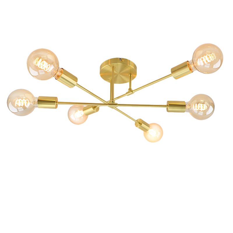 De moderne plafondlamp Amos is goud van kleur en gemaakt van aluminium. De gouden plafondlamp wordt geleverd exclusief bijpassende lichtbronnen. In deze lamp moeten 6 lichtbronnen met E27 fittingen. Het maximale wattage van de lichtbronnen mag niet hoger zijn dan 30 watt.