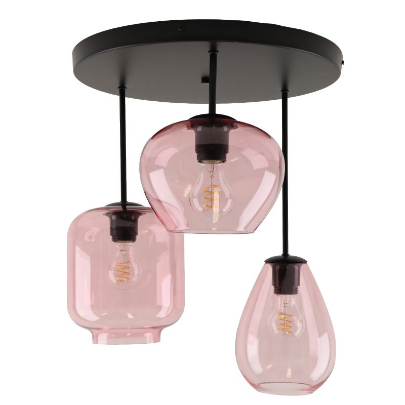 De moderne plafondlamp Caia is roze van kleur en gemaakt van glas. De roze plafondlamp wordt geleverd exclusief bijpassende lichtbronnen. In deze lamp moeten 3 lichtbronnen met E27 fittingen. Het maximale wattage van de lichtbronnen mag niet hoger zijn dan 7 watt.